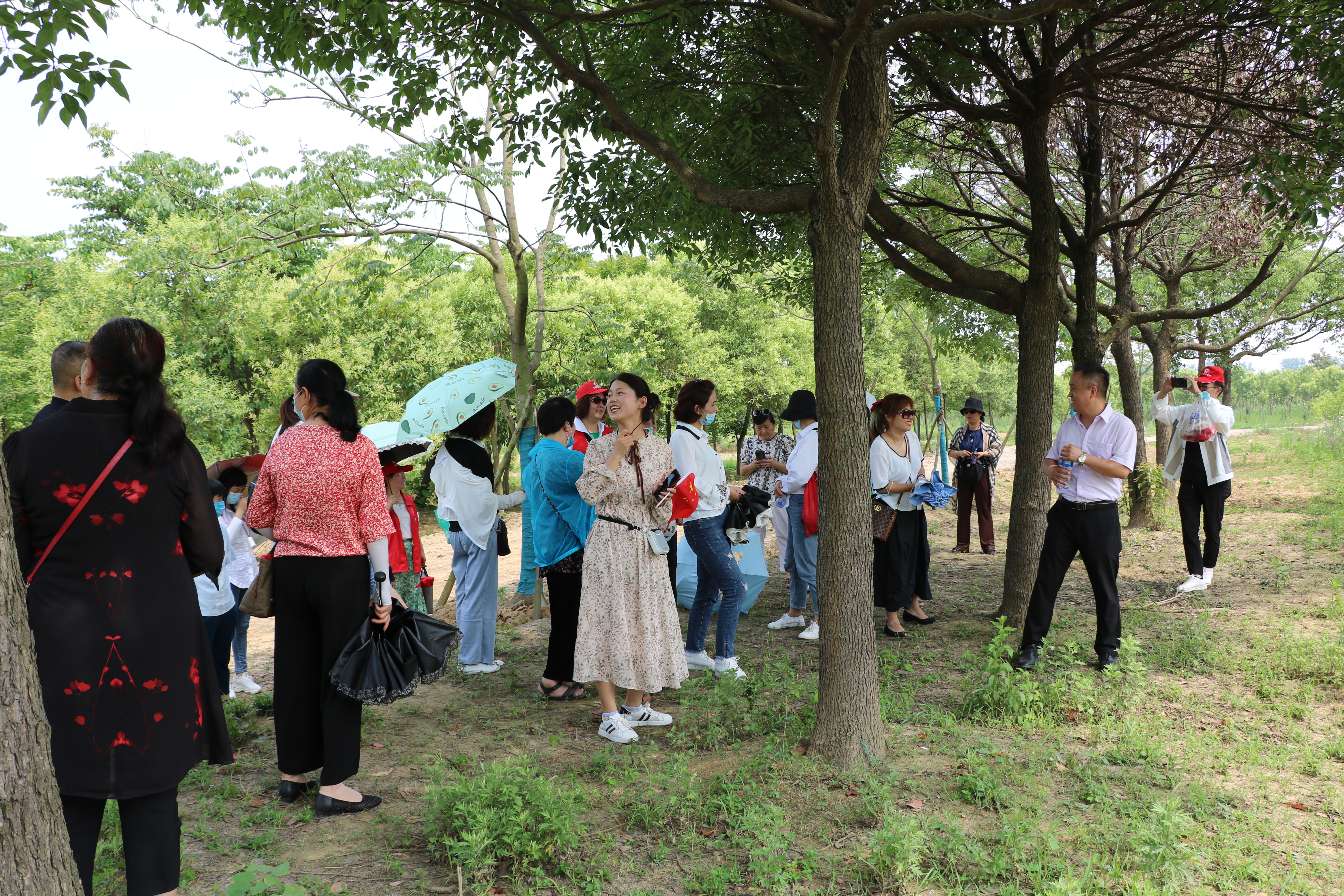 上午,紅蓮園居委會一行人乘坐大巴到達天鷺生態園,生態園位于長豐縣崗集鎮新元村滁河干渠旁,占地面積高達上千畝,園內有一農莊,紅墻石階,景色優美。稍事休整后,大家在天鷺導游的帶領下開始了今天的游園之旅。