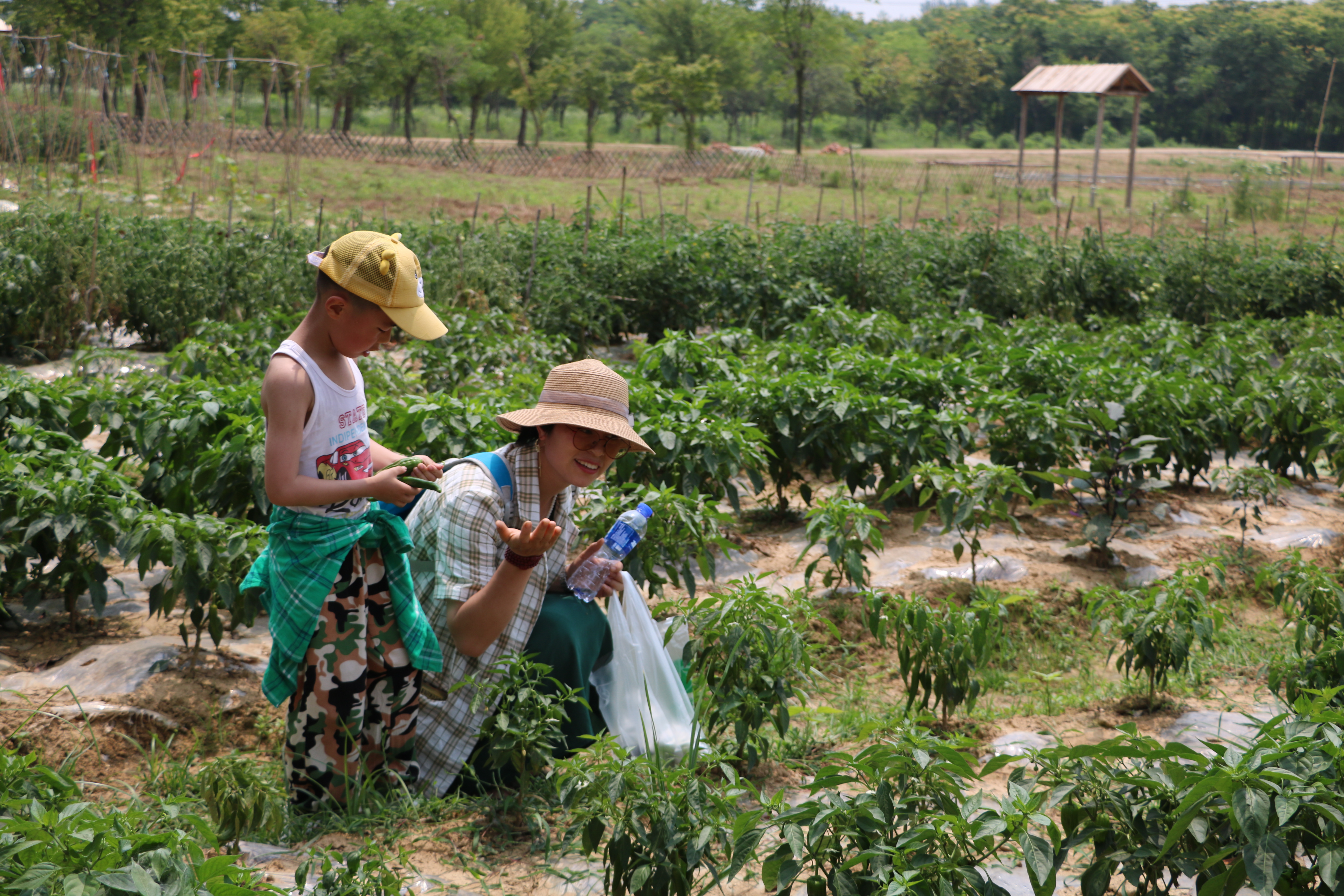 便到了農莊的“菜園子”,四面籬笆圍繞,園內時蔬茂盛,綠色生態,采摘方便,還有家長為孩子進行介紹,真像一堂戶外自然課。