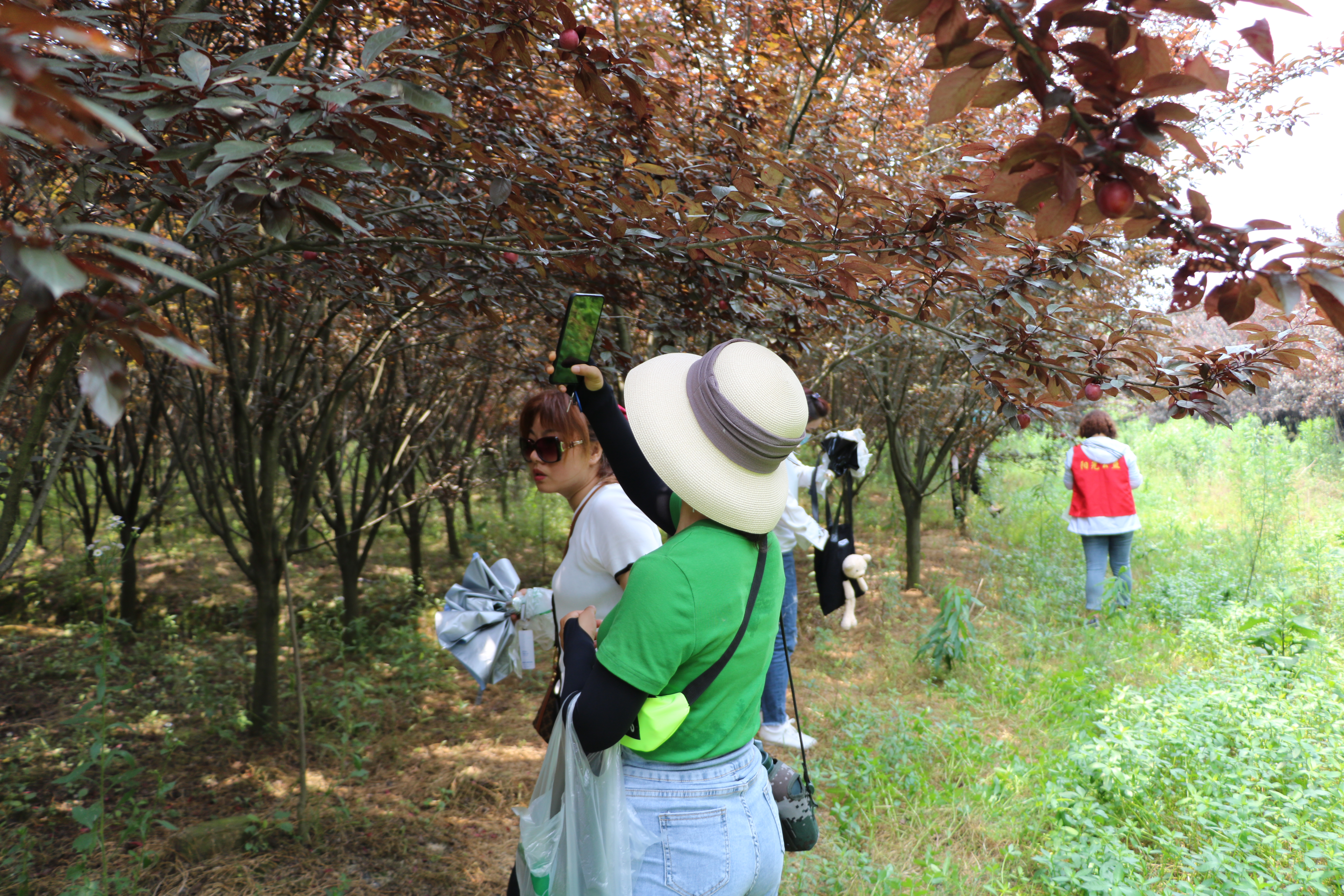 繼續深入,便是占地200多畝的紅葉李,林內陰涼,枝椏上結滿了李子,簡直是采摘愛好者的天堂。