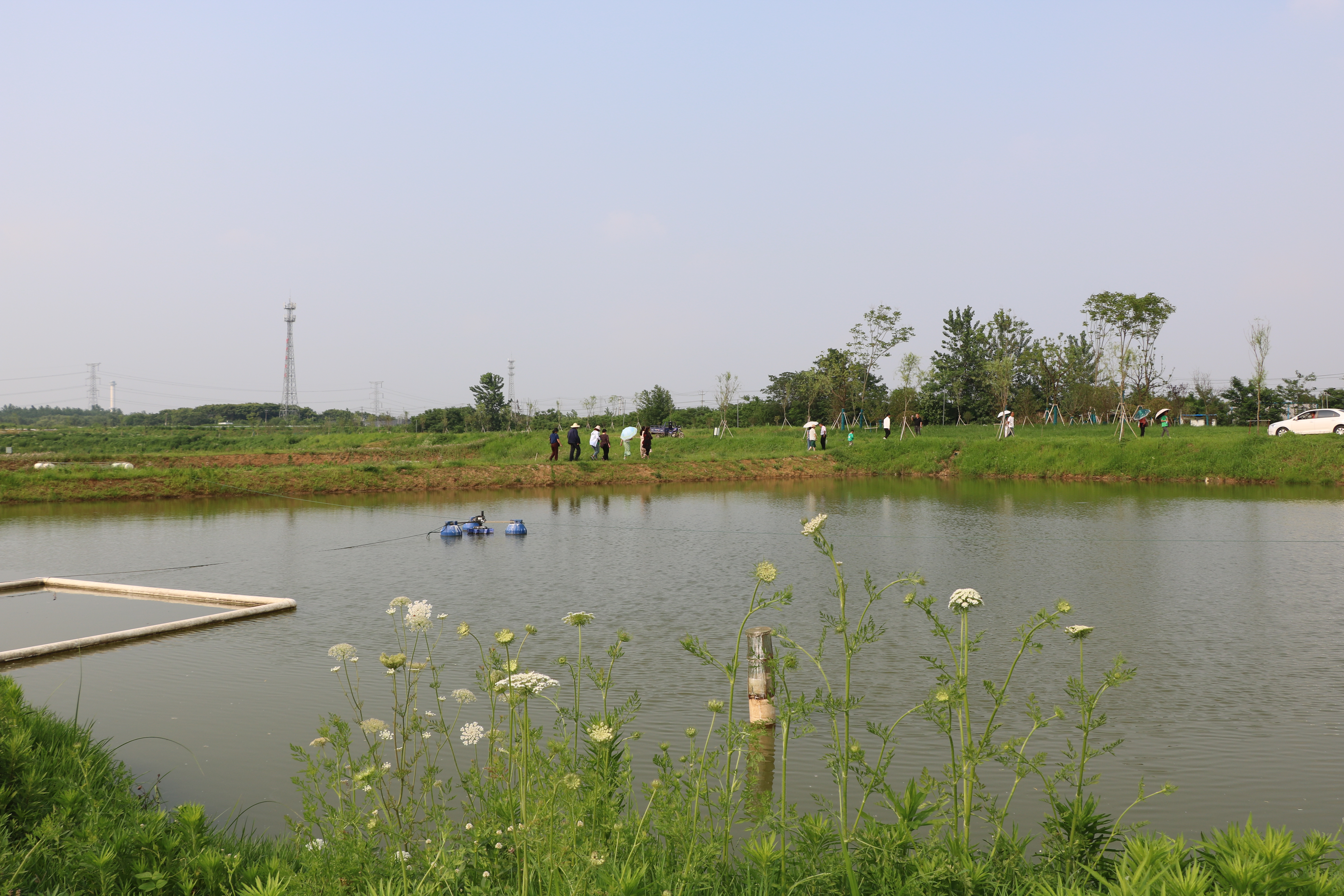中午,大家在天鷺生態農莊享受了美味的農家菜,所有食材均是菜園子自產,營養美味,綠色健康。下午,大家來到了天鷺小鎮,小鎮四面環繞著格桑花、油菜花、蘿卜花等,景色優美,蜂蝶環繞。此外,小鎮共有30多個魚塘,養殖鯽魚、黃桑魚、花鰱、河蝦等,河面不時有白鷺掠過,打漁師傅帶著大家撒網捕魚,感受了一把漁民的樂趣。