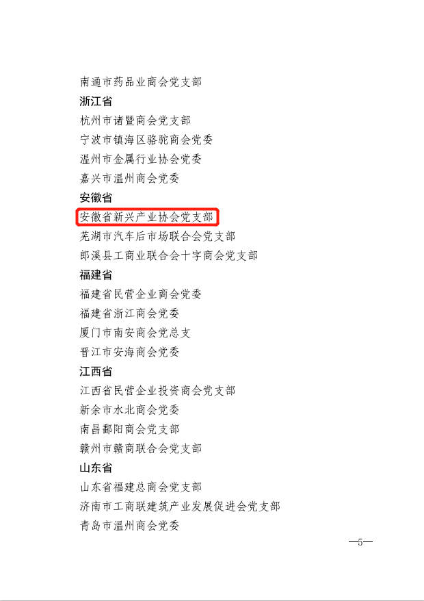 祝賀!安徽省新興產業協會獲評全國“商會黨建工作示范單位”榮譽稱號