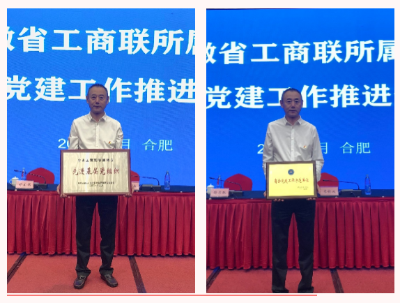 安徽省新興產業協會黨支部榮獲“全國工商聯商會黨建工作示范單位”和“省工商聯所屬商會先進基層黨組織”稱號,協會黨支部書記、會長姚廣傳參加會議并上臺接受表彰。