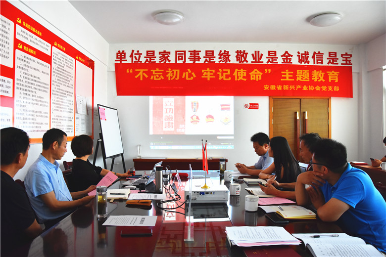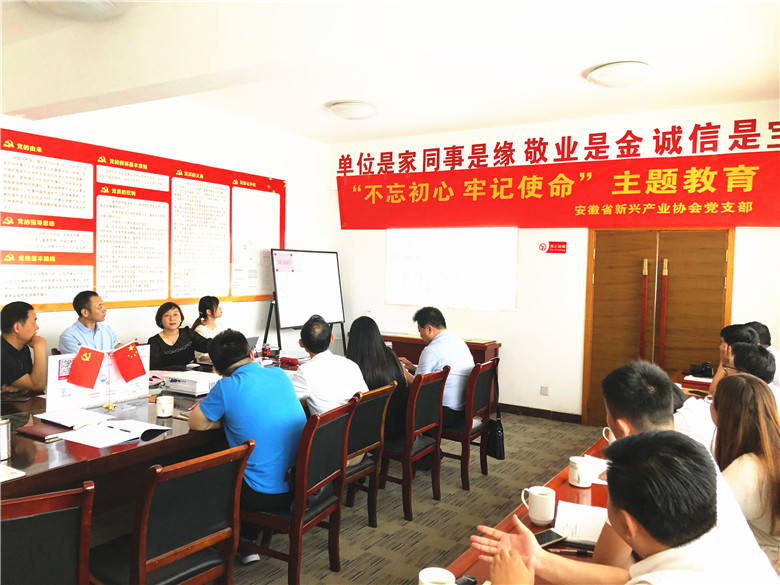 為深入學習習近平新時代中國特色社會主義思想,扎實推進“不忘初心、牢記使命”主題教育,2019年7月20日上午,安徽省新興產業協會執行會長、安徽天鷺控股集團董事局主席姚廣傳帶領集團黨支部所有黨員來到協會黨支部開展“不忘初心、牢記使命”主題教育專題學習。學習會特邀安徽省直工委黨校副教授張佩琳出任講師,參加學習的有協會駐會高級顧問儲士明,黨建指導員張輝,黨支部書記秦杰,執行會長姚廣傳,部分會員企業、秘書處工作人員和我集團黨支部所有黨員。學習會由姚廣傳主持。