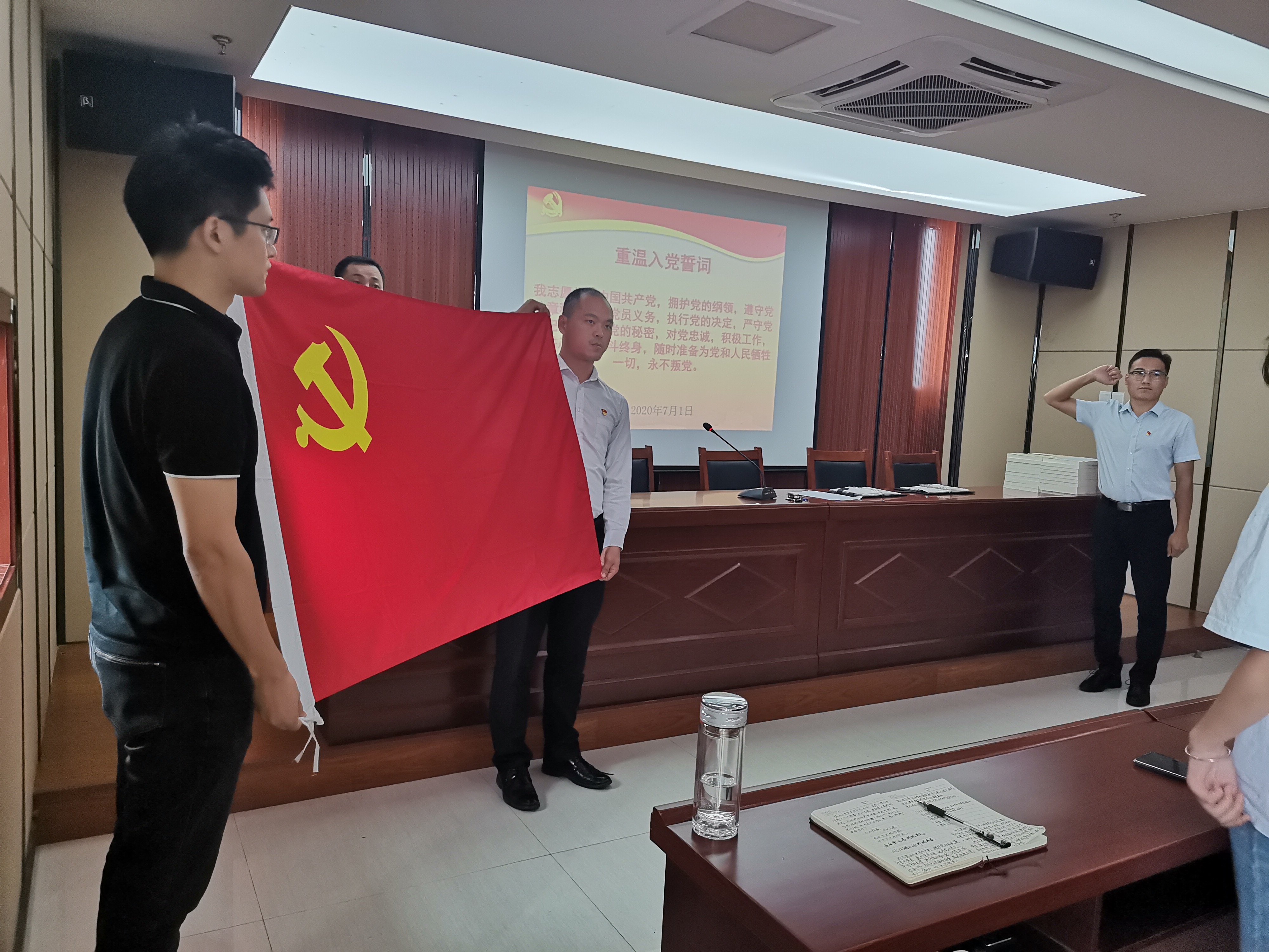 我集團張世偉書記帶領參會人員宣讀入黨誓詞;陳志云局長和談世掌同志等多名老黨員為參會人員贈《論堅持黨對一切工作的領導》一書。