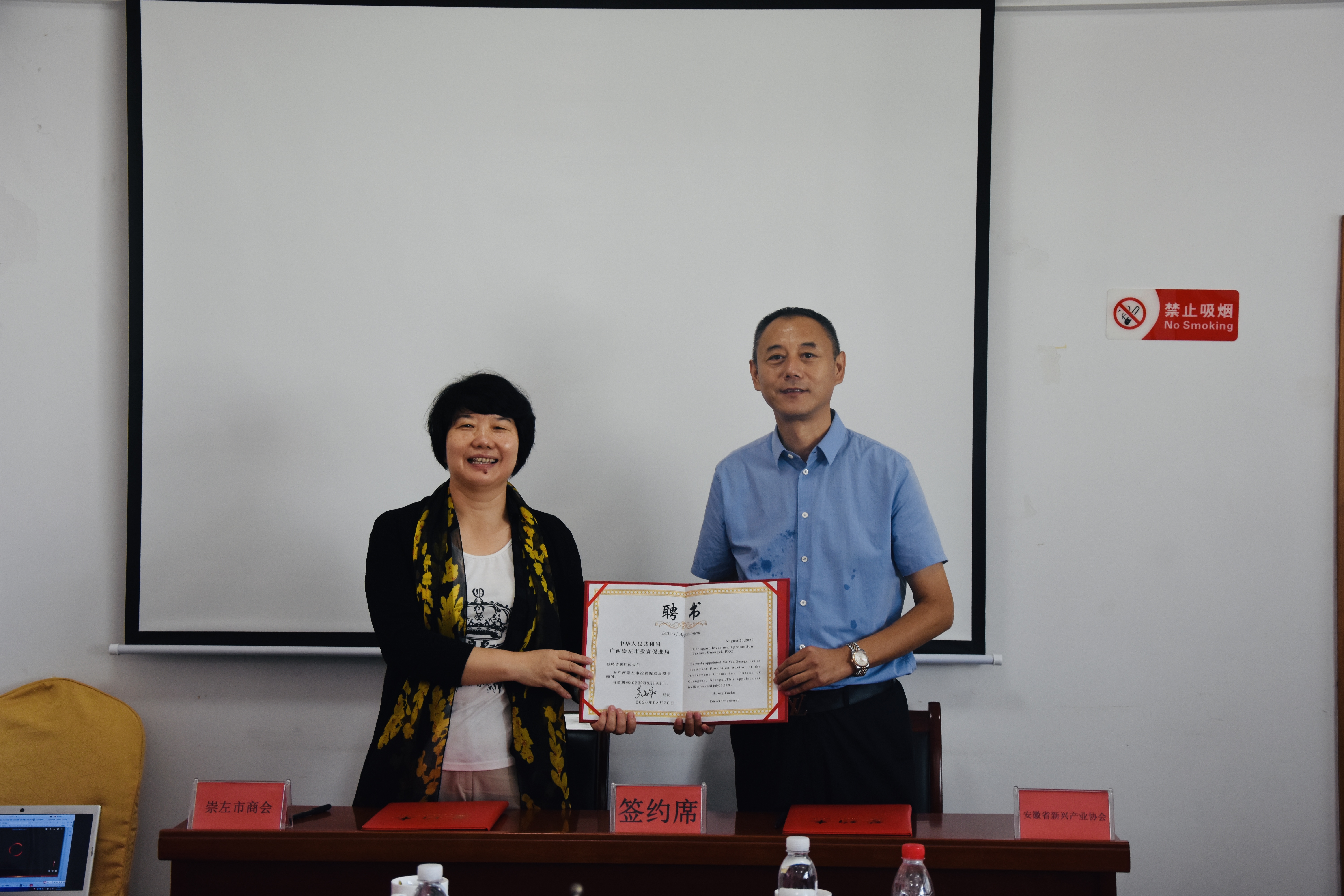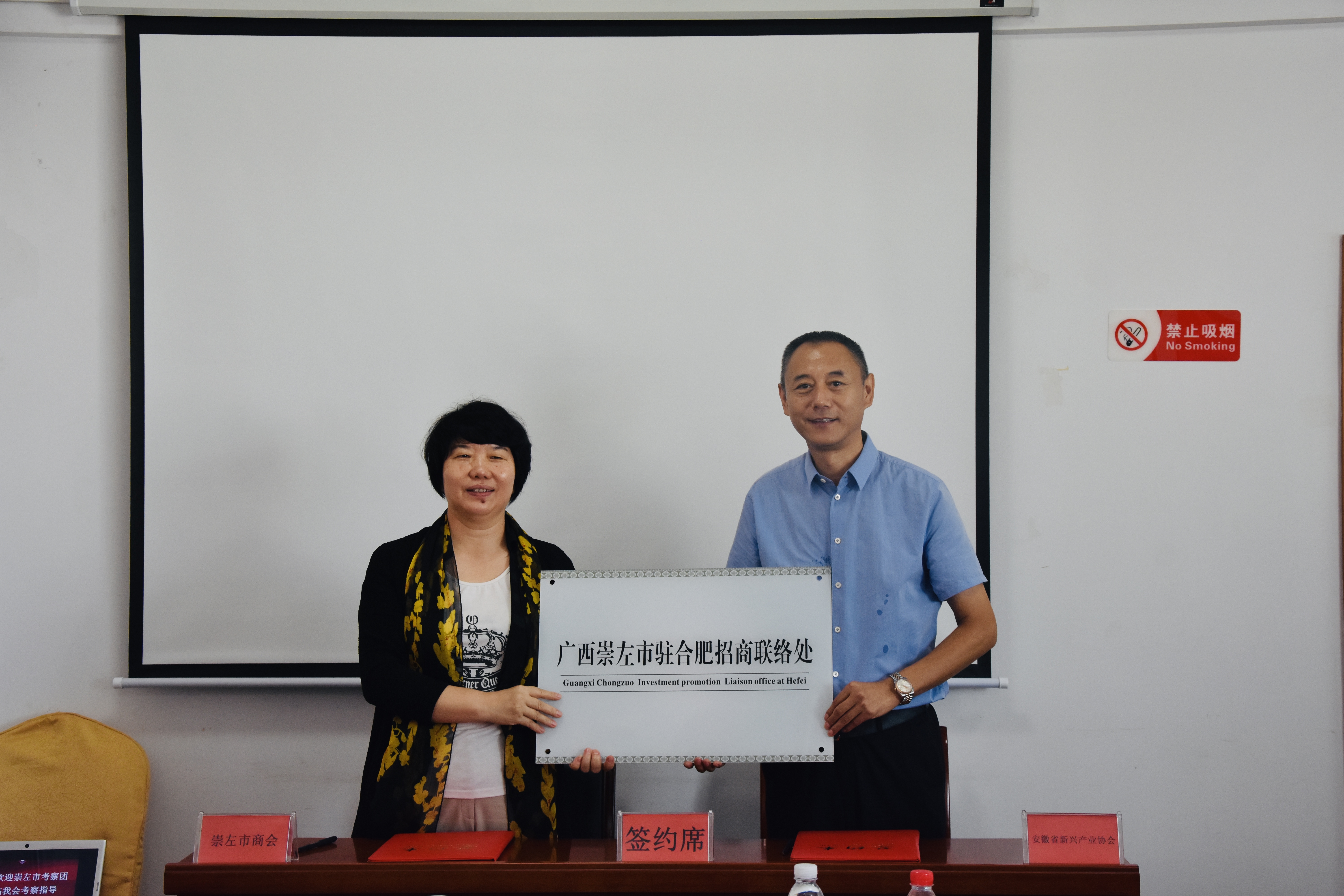 座談會上,崇左市商會會長吳愛紅與我集團董事長姚廣傳簽訂了友好商(協)會協議,并頒發友好商(協)會牌匾,共建友好商協會;授予安徽省新興產業協會“廣西崇左市駐合肥招商引資聯絡處辦公室”牌匾,聘請我集團董事長姚廣傳、“一帶一路徽商行”組委會主任張輝為招商顧問,以期搭建崇左市招商引資新平臺,進一步加強兩地友好往來、投資交流、務實合作,實現雙方互利共贏。