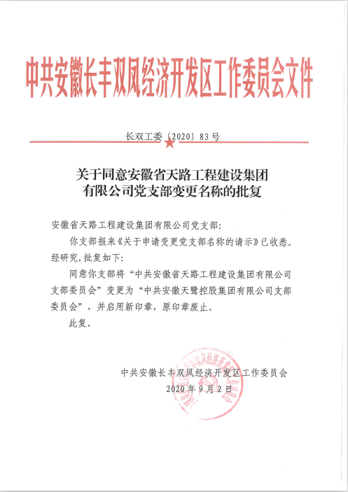 我集團黨支部正式更名為:安徽天鷺控股集團有限公司黨支部