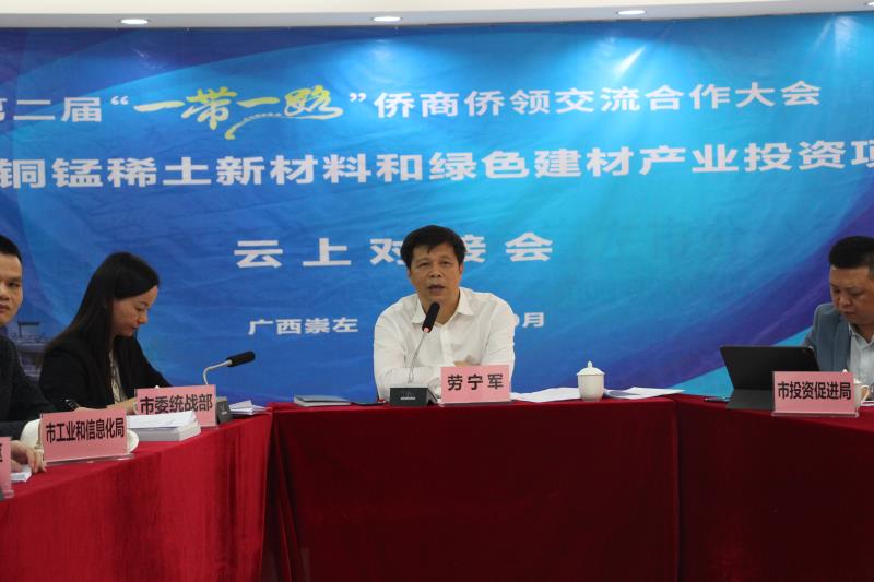 10月22日上午,由安徽省新興產業協會、合肥高新區青年企業家協會、廣西崇左市委統戰部、市投資促進局共同主辦的銅錳稀土新材料、綠色建材產業項目云對接會通過線上直播方式在安徽合肥與廣西崇左同時舉行。活動旨在進一步加強皖桂兩地溝通協作,推動安徽企業與崇左的深度合作,尤其是推動兩地在銅錳稀土新材料和綠色建材產業上的招商合作。