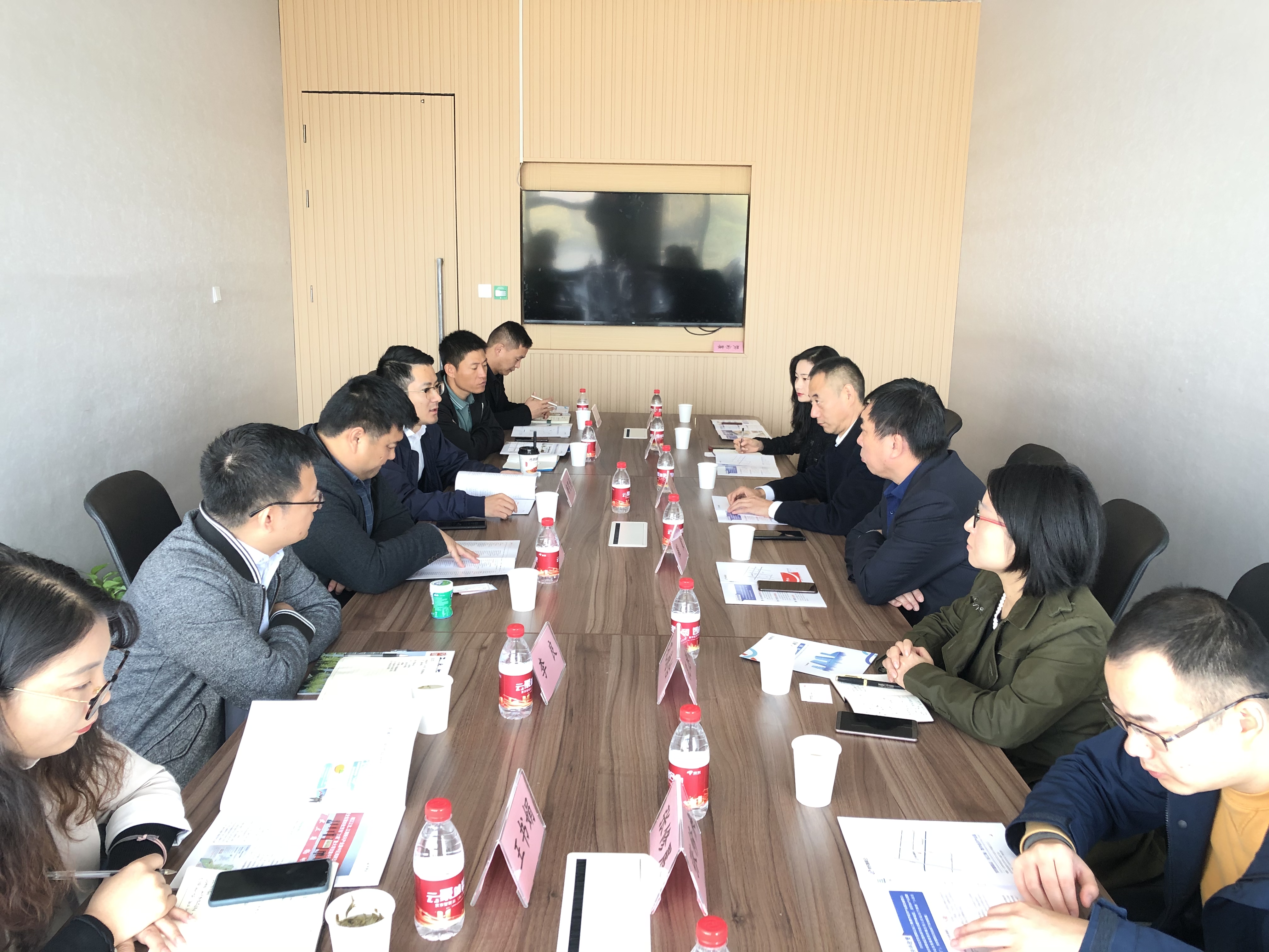 姚廣傳董事長一行參觀了基地多功能展廳,親身體驗了基地無人超市,對京東生態鏈業務體系進行了了解,雙方在基地會議室舉行座談,聽取了京東智聯云合肥基地總經理李建對產業園發展、環境設施、企業聚集等情況的介紹。