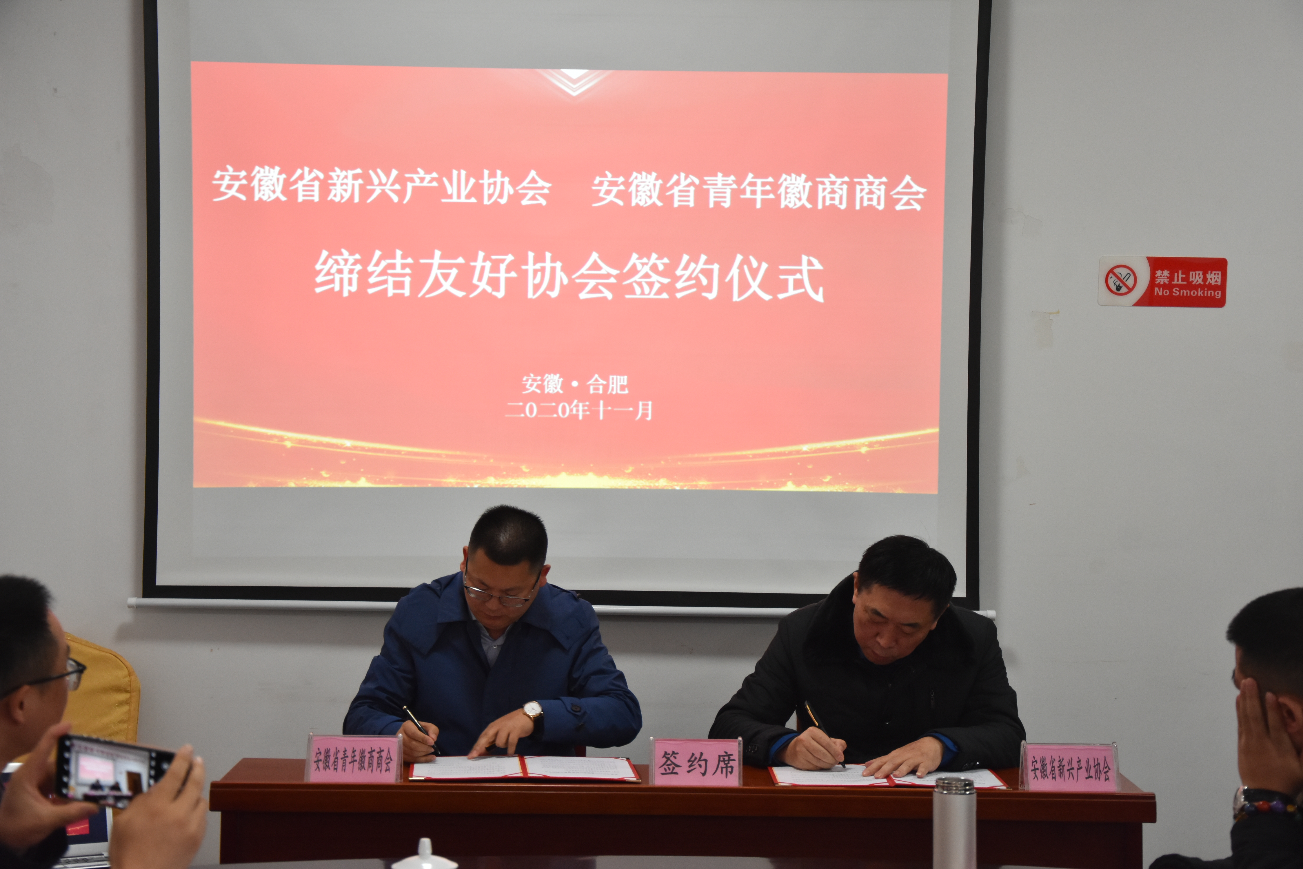 2020年11月25日,安徽省青年徽商商會監(jiān)事會主席王磊、副會長蔣智謀、秘書長李皖等一行來到安徽省新興產(chǎn)業(yè)協(xié)會進行考察交流,安徽省委統(tǒng)戰(zhàn)部非公經(jīng)濟處一級調(diào)研員韓永龍出席并講話。安徽省新興產(chǎn)業(yè)協(xié)會會長、安徽天鷺控股集團董事長姚廣傳等熱情接待省青商會一行。雙方進行了親切友好的交流座談并簽署友好協(xié)(商)會合作協(xié)議。