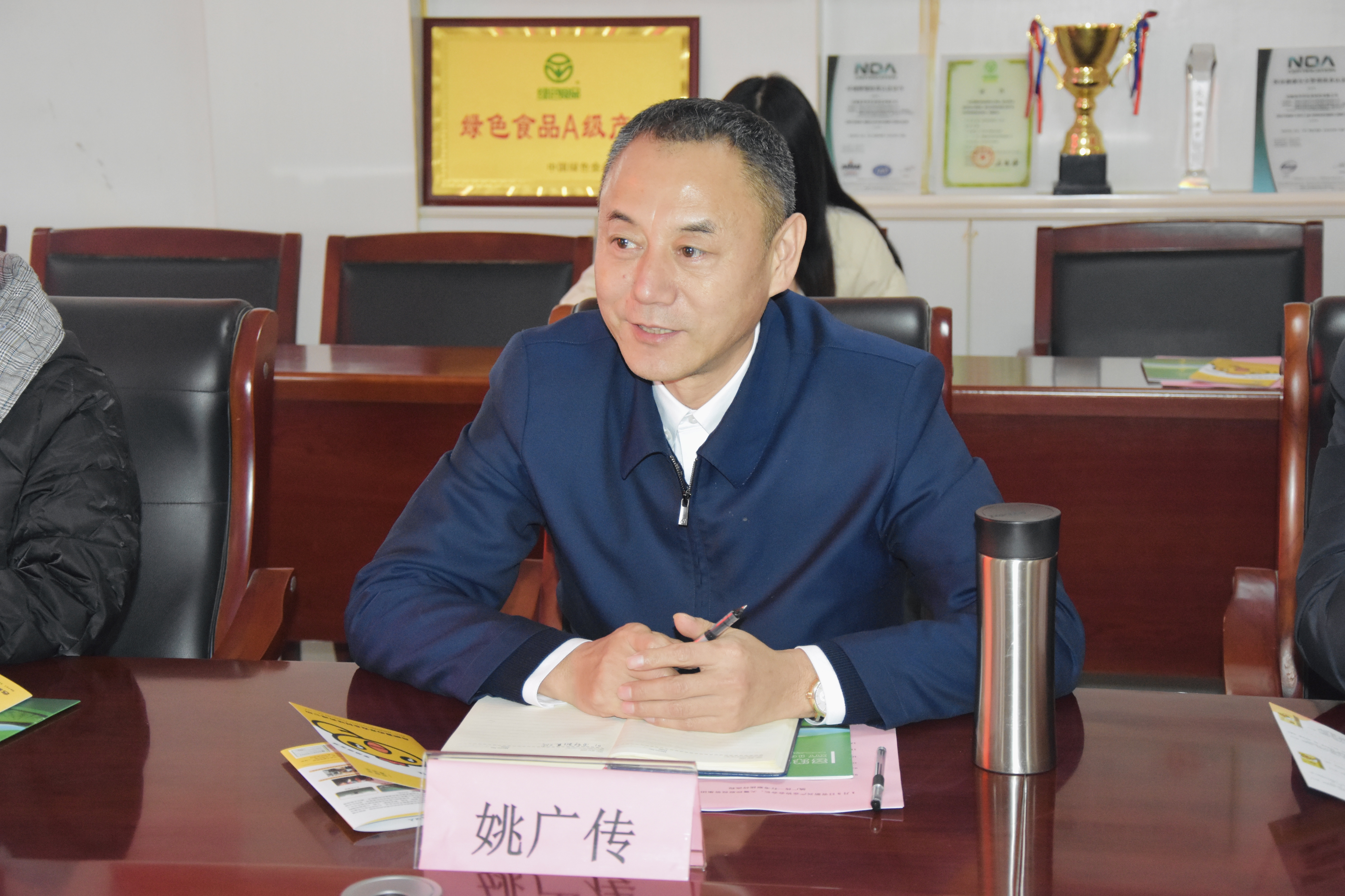 姚廣傳董事長對喜洋洋的熱情接待表示感謝,對喜洋洋農業近年來的發展表示肯定與表揚,他指出,喜洋洋公司不僅是為老百姓提供綠色健康產品的農業企業,還是國家高新企業,機械化、智能化的現代農業企業,期待喜洋洋下一步能夠發展壯大,成為進階性的農業產業,充分發揮資源優勢,利用富硒富鋅元素,擴大產業鏈條,形成完整的生態養殖、生態循環的農業產業鏈,利用有限的土地資源,創造無限的社會價值;省新興產業協會可以為喜洋洋搭建上下游產業鏈平臺,提供農業企業資源,促進更多產業進行良性互動,共同為建設美好鄉村添磚加瓦。