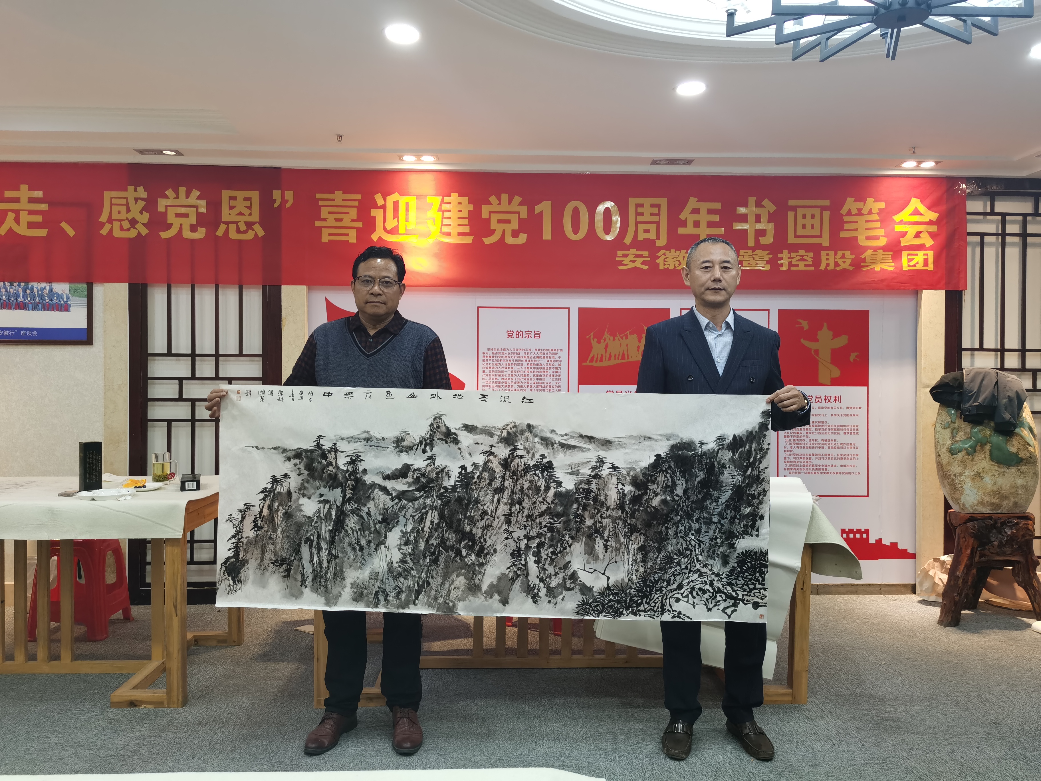2021年是中國共產黨百年華誕,百年征程波瀾壯闊,百年初心歷久彌堅,百年風華恰是正茂。3月30日,一場以“跟黨走 感黨恩”為主題的慶黨百年華誕書畫筆會活動在安徽天鷺控股集團黨建活動室舉行。